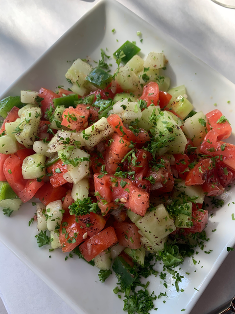 A flavorful salad of finely minced parsley, bulgur, red tomato and minced onion tossed in a lemon virgin olive oil dressing. mezza portion. $12